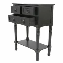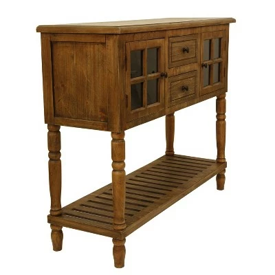 Traditional design and timeless character are the building blocks upon which the Morgan Console Table was designed. The quintessential transitional table that blends classic styling, modern updates, versatility and function. Two drawers provide an out of sight storage place for unsightly clutter. Stylishly house belongings in the two cabinets, each featuring a glass window frame door that adds charm to your living space. A slatted shelf expands your storage capability. A versatile piece that can be used as an entryway table, living room accent table or in a dining room as a buffet server. Measures 42x14x34.25 Constructed of wood.