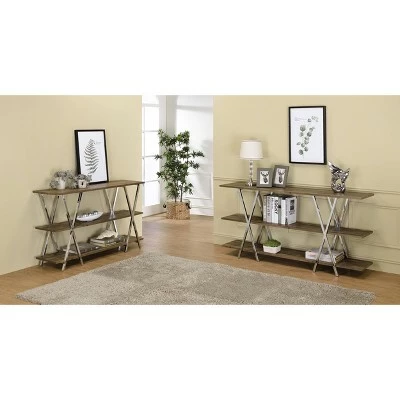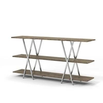 Add a touch of glam to your home and witness the room come to life as you decorate this beautiful console table. Utilize this table’s versatility and place it in any room. Boasting 3 tiers of open shelving, a geometric side framework, and a chrome iron metal frame, this blend between classical and contemporary styles will provide elegance without compromising functionality. Be assured that your decorative items will be safe from harm thanks to the satisfactory and sturdy weight capacity that its gorgeous manufactured wood shelves offer. This is a must-have piece to create the ultimate display stage for collectibles or mementos. Available in 47 in. and 60 in. sizes.