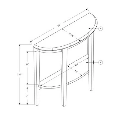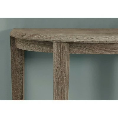 Add a stylish touch that will complete your living space with this sleek hall console table finished in a dark taupe reclaimed wood-look. The curved, half-moon shape is complimented by the chic tapered legs. Ample surface area and a two-tiered design make this piece perfect for displaying your favorite decorative items or pictures.