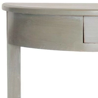 With clean lines inspired by Mission Style furniture, the transitional Alex console by Safavieh adapts to myriad decorating themes. Crafted of Fir in a natural finish, this Demilune table has a handy drawer and shelf for storage. The Alex console is ideal in an entry hall, bedroom or living room and can support up to thirty five lbs. The Alex console table is a great choice for Oriental, Rustic, or Transitional styled areas in your home.