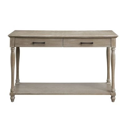 Give your living room an instant makeover with the Ariolo sofa table. It is a beautiful traditional table that will never go out of style. Its wooden frame and turned legs are a great design feature that adds a touch of elegance to this classic style. With two functional drawers and a lower open storage compartment tier, this table has no shortage of use and functionality. Crafted from selective woods, you’ll have a sturdy piece in your living spaces for years to come. Matching coffee table and end table available