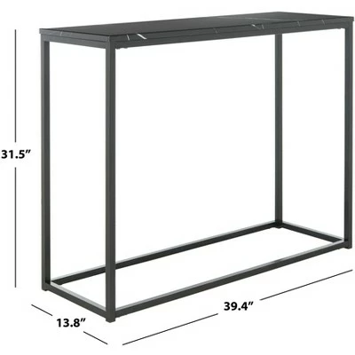 Endlessly versatile, the timeless style of this Baize Console makes it a classic. Designed with a smooth black marble top accented by a Parson’s style black frame, its chic geometry makes it ideal in a hall, foyer, or behind the living room sofa. Care Instructions: Dust regularly with a soft, dry cloth. Never use oiled or treated cloths on lacquered finishes. Some finishes can be wiped with a damp (not wet) cloth, followed at once by rubbing with a dry cloth to remove fingerprints and smudges. For persistent spots, gently clean with a soft cloth and a solution of water and mild soap, make sure to wipe dry. Use adhesive felt pads, coasters and placemats to protect your furniture.