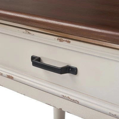 - Distressed white finish adds antique charm