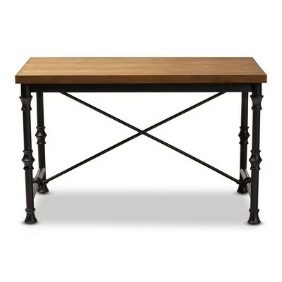 Featuring a large tabletop, the Verdin desk provides an abundant amount of workspace. Crafted from durable dark bronze-finished metal, the Verdin features an MDF wood tabletop in a distressed ash veneer finish for chic contrast. Inspired by industrial design, the table is fitted with a crisscross stretcher for both structural support and visual interest. Striking attention to detail is displayed in the stunning moldings that adorn the frame. This refined desk is suitable for a wide range of decor styles, including both vintage and contemporary. The Verdin desk is made in China and requires assembly.
