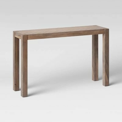 Decorate your entryway or any other area using this Bayshore Herringbone Console Table from Threshold™. This brown console table features a herringbone design for an appealing look that blends seamlessly with your existing decor. Just display your photos, vases or other decorative items on this table for a look that’ll help tie your space together.