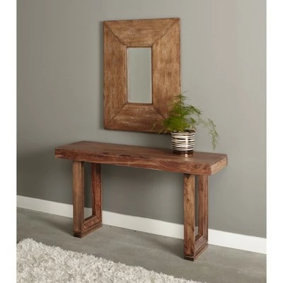 Showcase your favorite lamp or hang your prized painting over this stunning Brownstone console table in your entryway or living room. Constructed of solid sheesham with our Brownstone Nut brown finish that perfectly compliments the grain of the wood. Picture framing legs help to elevate the simple design to a more sophisticated look. Whether you are searching for that perfect console table or an entire table group you won’t be disappointed with this one.
