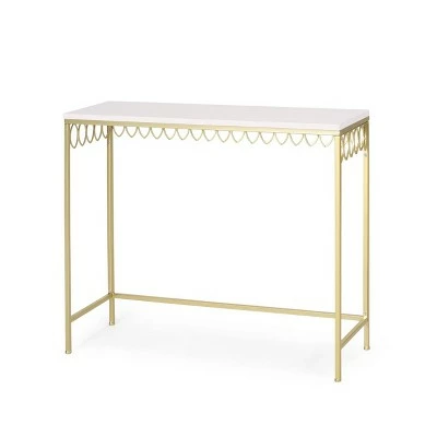 IRON FRAME: Constructed of iron, the frame of this console table is made to be incredibly durable, ensuring that this piece will hold up under use. The frame is finished with a dazzling gold color, making this an understated yet chic addition to your home.