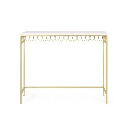 Bring your entryway to life with an accessory that makes it easy for you to greet your guests with striking aesthetics. Our stunning console table brings a perfect amount of modern glam charm to your home. Featuring a sleek tabletop supported by an elegant open frame, our accessory is an excellent accent piece for any living room or hallway. This is finished with a gorgeous petal-patterned trim for an extra touch of luxurious style, giving every interior space an eye-catching and sophisticated touch.