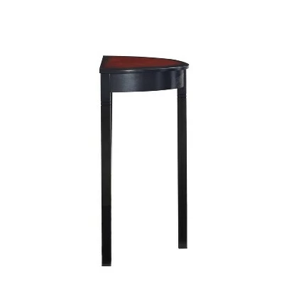 The Camden Collection has a transitional design and style. Perfect for small spaces, each item occupies minimal floor space but provides ample storage and display space. The rich Black Cherry finish exudes sophistication. The Demi Lune Console Table is perfect for placing in an entry, near a sofa or in your living space. A wide, smooth top provides space for displaying a decorative piece. Sturdy and durable.