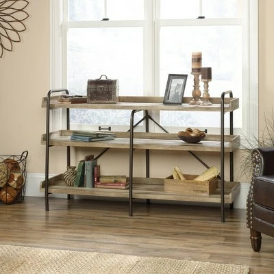 Beautify your home with the chic industrial design of this anywhere console from the Dakota Pass collection. This attractive stand accommodates up to a 60″ TV, making it the ideal spot to gather around to binge watch that new must-see show, have all-day movie marathons or to play video games with your friends. Switch it up and use it as a stunning accent piece for storage and display of just about anything your little heart desires. Its spacious top surface, along with its open gallery shelving, provide you with ample amount of room for you to store and display anything from your collection of novels and bins full of crafting supplies to decorative plants and photos of the family. It has room for it all! Its powder coated metal frame and rear crossbars not only add to the appeal, but also ensures durability for years to come. Finished in Lintel Oak, this handsome console is sure to complement in any room of your home.