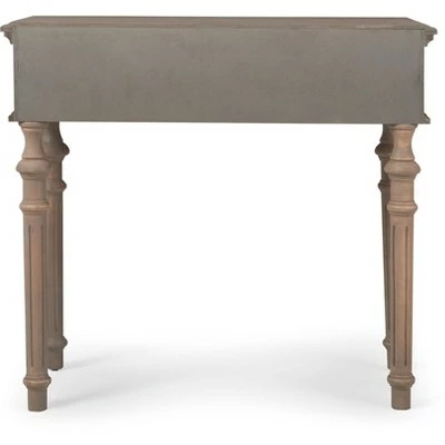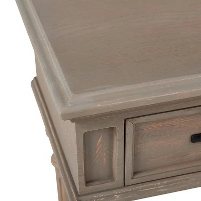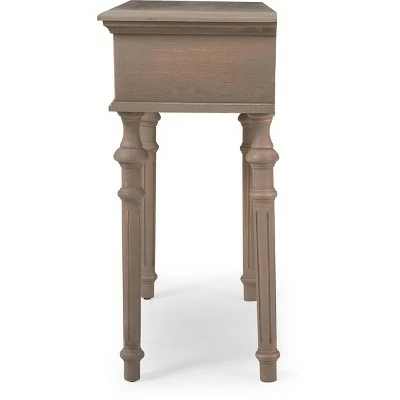This handsome storage console table is the perfect piece to showcase your favorite decorative items and photos. The sophisticated traditional style is an attractive addition to most decors. In a charming antique gray color finish that works well in any room. You’ll appreciate the soft look and smooth curves of the turned wood legs. The sophisticated look finishes with black hardware for a timeless and tasteful look. The rectangular table top and two drawers provide a convenient storage and display surface.