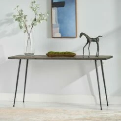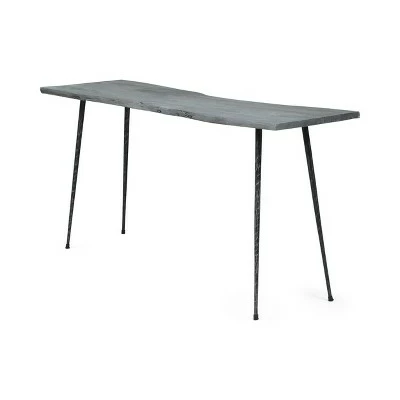 Proudly display your favorite photos and decorative items on an accessory of incredible style that brings your home a unique touch. Our handcrafted modern industrial console table brings a perfect amount of stylish comfort and edgy aesthetics to your home. Featuring a sturdy acacia wood top supported by stunning toothpick legs, our accessory is an excellent centerpiece for any living room or hallway. This is finished with a charming faux live edge design, giving every interior space a refreshing, natural touch.