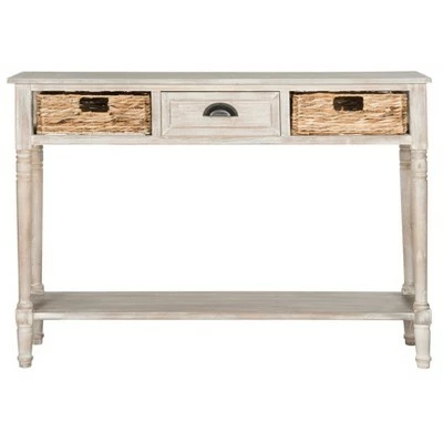 From coastal cottage to rustic lodge, this pretty vintage distressed console lends welcoming charm to an entry hall, and makes a wonderful focal wall in a living or family room. With rattan weave drawers and lower shelf, it is a canvas for accessorizing. Crafted from Pine wood and aluminum alloy with a water based paint finish, this storage table can support up to 60 lbs.The Christa console table is the perfect addition for Contemporary, Country, Nautical or Transitional style interiors.
