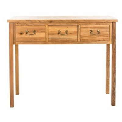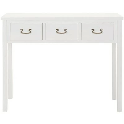 The Cindy console, with slightly tapered legs, just right distressed white finish and three drawers for stashing, has a basic, easy-going appeal. Perfect for country, beachy or casual settings, the console is crafted from elm wood. Its wide build provides just enough space for artwork, photos, and other treasures to be displayed while still keeping items neat and tucked away with its ample drawers. Minor assembly required.