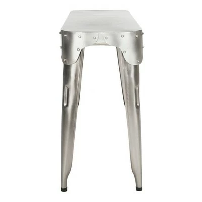 The industrial chic Classic iron console table by Safavieh will brighten an entry hall or living room with an air of masculine sophistication. Crafted of by metal artisans, each one of a kind console is beautifully detailed with riveted corner patches. Simple modern designs allows it to be an easy to style piece and brings attention to the items displayed on top. The Classic console table is able to support up to fifteen pounds. It is the perfect addition for Industrial, Modern or Rustic style interiors.