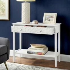 Country cottage collection will be a charming addition to your home’s decor. Country Cottage has a weathered finish; each piece is uniquely yours. With its detailed dental work, square legs and wood construction, each piece will be unique in your living space. Media/console table is a versatile piece for your entryway, television or even as a sideboard in your dining space.