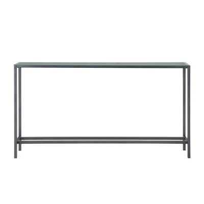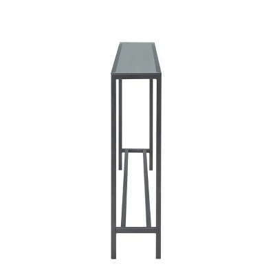 Expand your display space with the Aiden Lane Dillard Narrow Long Console Table. A wide, mirrored tabletop shows off framed photos, décor pieces, or flowers, while the slim, space-saving design slides neatly behind your sofa or into your foyer. A sleek metal frame keeps your living space clean and uncluttered, defining your small space or open concept floorplan in simple style. Enjoy your décor without sacrificing space with this narrow sofa table.