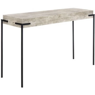 Graciously elevated on slender black iron legs, this sculptural contemporary rectangle console table is a work of art. Designed to curate precious objects, its finely crafted light grey and black wood top blends seamlessly into any entry or living room. Care Instructions: Dust regularly with a soft, dry cloth. Never use oiled or treated cloths on lacquered finishes. Some finishes can be wiped with a damp (not wet) cloth, followed at once by rubbing with a dry cloth to remove fingerprints and smudges. For persistent spots, gently clean with a soft cloth and a solution of water and mild soap, make sure to wipe dry. Use adhesive felt pads, coasters and placemats to protect your furniture.