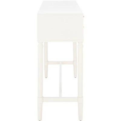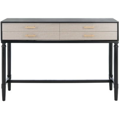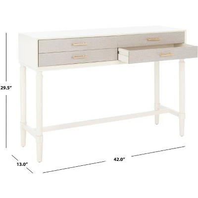 This Estella Console gives timeless elegance a fresh new look, making it perfect for any classic contemporary hall or entry. EstellaÕs traditionally inspired carved details, gracefully turned legs, and neutral finishes are beautifully juxtaposed with the sleek metal bar pulls on its four spacious drawers. Care Instructions: