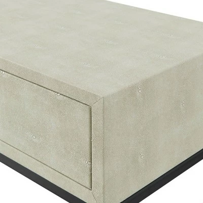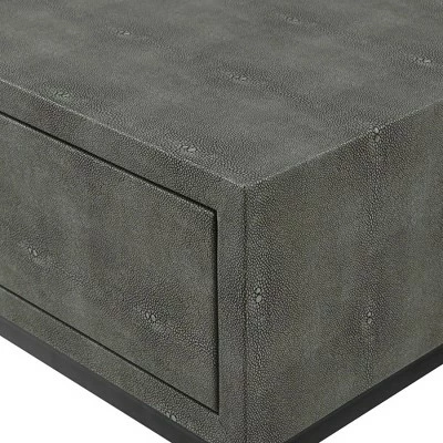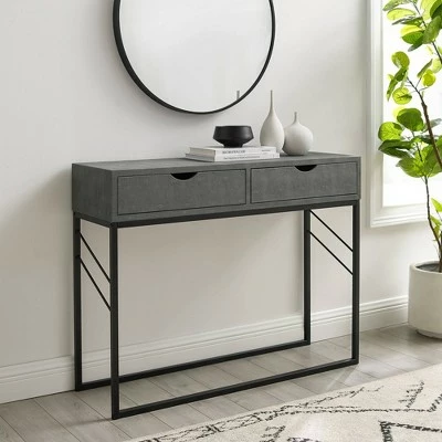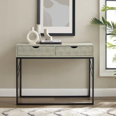 Look forward to coming home when you greet Saracina Home’s Faux Shagreen Modern 2 Drawer Entry Table. The eclectic, textured faux shagreen finish is the eclectic splash of intrigue to keep your space fascinating. Two drawers with cutout handles and sophisticated fabric linings are the perfect spot to store your keys, mail, or knick-knacks. The black metal legs and contemporary angled bar accents tie the piece together, giving you the modern harmony that your living room, entryway, or hallway has always craved. To keep the theme throughout your whole house, check out Saracina Home’s matching desk, coffee table, and side table.