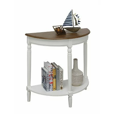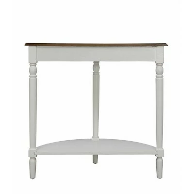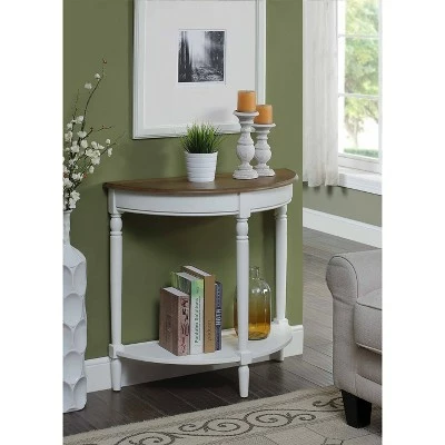 The French Country Entryway Table is the perfect way to greet your guests, or welcome you home. The beautiful wood grain finish, and carved legs combine sophistication and elegance. Also featuring a bottom shelf for additional storage, or welcoming pieces, and it is half moon shape helps reduce bulk. Coordinating items are available and sold separately.