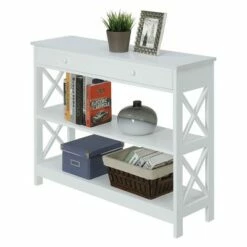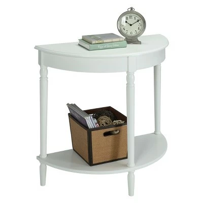 The French Country Entryway Table is the perfect way to greet your guests, or welcome you home. The beautiful wood grain finish, and carved legs combine sophistication and elegance. Also featuring a bottom shelf for additional storage, or welcoming pieces, and it is half moon shape helps reduce bulk. Coordinating items are available and sold separately.