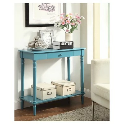 The French Country Hall Table is the perfect addition to any home. Featuring a large single drawer for concealed storage and a bottom shelf for additional storage or display, you can utilize every part of this table. Beautifully crafted, the French Country Hall Table also boasts a real oak wood veneer as you can see the details in the wood grain finish. The beveled table top edge and sculpted turned legs offers the style that you were looking to add to your home. Although this French Country Table is ideal for entryways and hallways, this piece can be utilized anywhere in your home. Available in multiple finishes the French Country Hall Table will fit beautifully with your existing home decor. Look for additional coordinating pieces available from Breighton Home French Country Collection.