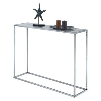 The Gold Coast Faux Marble Console Table combines Victorian and modern concepts. The smooth faux marble table top paired with clean lines create a crisp look. The open breezy feel of this table completes the look. Available in multiple finishes this piece will easily complement the look of any new or existing decor. This table also features quick and easy assembly. Look for other items from the Gold Collection sold separately.