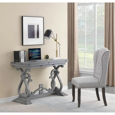 How we all love multi-functional items, and this Flip Top Console is definitely on top of that list! Finished in our Gramercy Weathered gray with stair step feet and a wonderfully curvy accent crossbar, this Console is just lovely up against a wall with lamps and photos. Have guests stopping by? Just flip open the two sides and now you have a large space for a casual dinner or game of cards! The options are totally yours!!