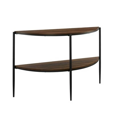 When the half-moon hits your eye, that’s the Half Circle Entry Table by Saracina Home. This modern, half round console table looks stylish whether it’s in the entryway or pushed up against the back of a sofa. The MDF wood core and metal frame set the stage for plants, key bowls, or family photos. An added lower shelf gives you twice the storage, so there’s even room to display conversation-starter books or decor. The demilune silhouette is the little slice of heaven that your contemporary home has been wishing for.