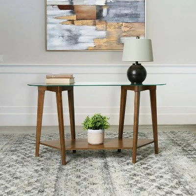 Bring interest to your space with the contemporary Harper Wood/ Glass Console Table by Abbyson. With its geometric shape and use of glass and wood materials, this piece provides a simple yet solid aesthetic that lends itself wonderfully to any living space. Featuring a floating tempered glass top, your guests will be wondering where you purchased such a great decor piece.