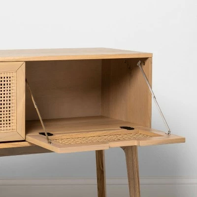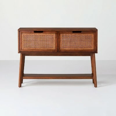 - Wood and cane console table gives your space sleek and functional style