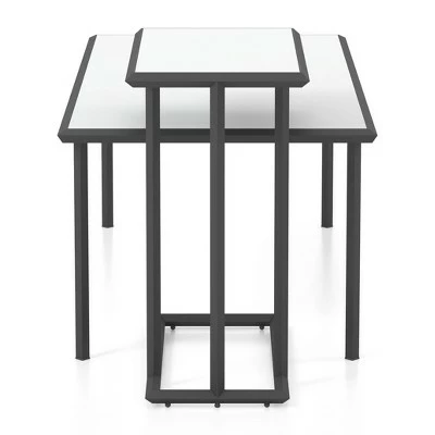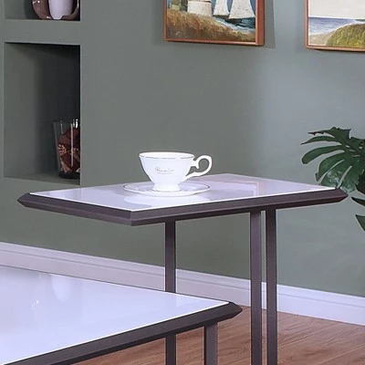 Create a minimal, elegant living room space with this 2-piece occasional table set, complete with a spacious coffee table and tall end table. Each contemporary style table features a white high gloss tabletop surface, supported by sturdy frame and legs in a gunmetal gray. The smaller end table also offers a cantilever styles shape, allowing you to slip it over a chair armrest to keep a drink nearby.