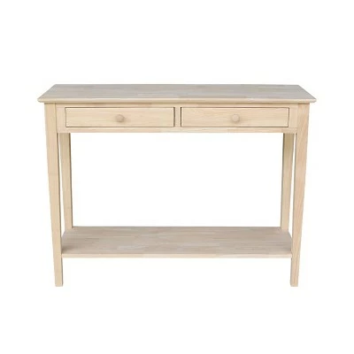 International Concepts home furniture is for those who appreciate high quality, wood furniture with a traditional and elegant look. This piece will beautifully complement any decor in your home. The server is made of solid hardwood with a butcher block surface. It measures 48″W x 17″D x 36″H. The shelf is 45.6″ x 14.8″. The inside dimensions of the drawers are 17″W X 11.5″D X 2.2″H. They have full extension glides for easy open and close. The server is unfinished, allowing you to match any decor. It comes ready to assemble.