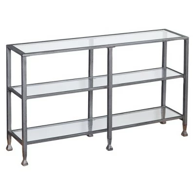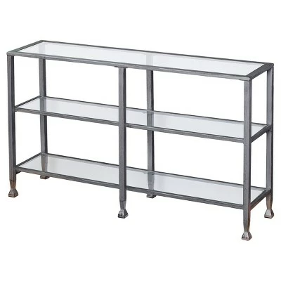 Simplicity stuns with the Aiden Lane Jamel Narrow Metal Console Table. Three-tier, metal frame with tempered glass shelves creates a slim profile to fit into even the smallest of spaces.