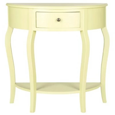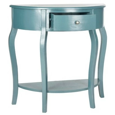 Despite its diminutive stature, the Jan Demilune console has presence. Classic and elegant, but not stuffy, the piece is crafted of Pine wood with a crisp colored finish and features gentle curved legs paired with a pullout drawer and shelf. Form and function exist in perfect harmony with this transitional console. This storage console table can support up to 35 lbs. The Jan Demilune console is a great choice for Contemporary, Nautical or Transitional style interiors.