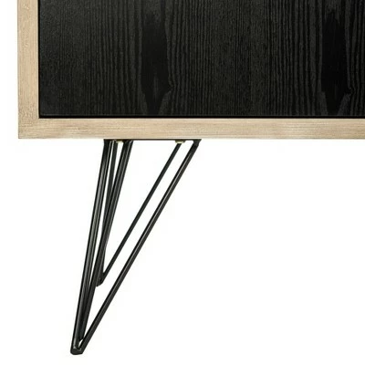 The catalogue of a top vintage modern design dealer inspired this contemporary sideboard. Crafted with clean lines, its charming retro style brings instant character and charm to minimalist interiors with its chic neutral light gray and black palette. Strikingly simple, this hardworking piece maximizes storage with a hidden compartment behind two black doors. Constructed from MDF wood and iron, this sturdy sideboard table is able to support up fifty pounds. The Jeralyn sideboard is the perfect choice for Mid-Century and Transitional styled rooms.