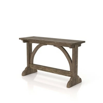 Give your living space a rustic ambiance with this farmhouse style console table. Featuring wood construction with wood grain accents, the table comes with a trestle base and a support beam that adds stability. The table also features curved support beams that add a touch of style and convey an arched elegance, perfect for most any type of decor.