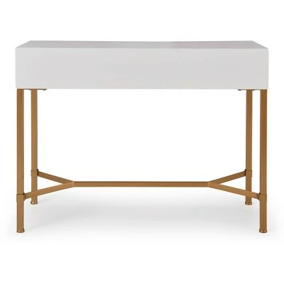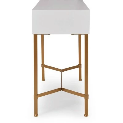 Console tables are a little higher and more narrow than most other tables, making them a great fit for hallways and other tight spaces. This versatile table features a clean white finish and pops of gold to create a fun focal point in your room. The gold metal legs and cross base of this piece finish off the look with a timeless sophistication. You’re sure to love the handy storage drawers and rectangular table top to maximize your space.