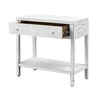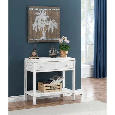 With a spacious drawer to hold soaps and lotions, and a lower shelf for rolled up towels or a basket of goodies, this lovely one drawer Console is the perfect choice for your guest bath, kitchen or sunroom. Finished in our fresh Boardwalk White Wash for a gently distressed appearance, this lovely Console will be fit beautifully into any room.