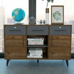 Keep all your papers or media items organized with the Lindon File Console Table. Built with nine storage compartments in one unit to provide all of your categorization needs, with a mixture of closed and open drawers and shelving for a modern look. Great for your home office or living space.