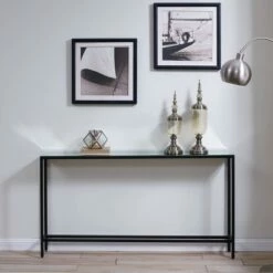 Live glam with the Aiden Lane Lupina Demilune Console Table. Wide beveled mirror top displays flowers, while lower shelf stores books and magazines. Come home to chic with this sophisticated sofa table.