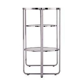 Embrace sleek style with the Aiden Lane Malissa Mirrored Console Table w/ Storage. A metallic frame crisscrosses beneath two round display shelves, crafting glossy shine in an asymmetrical design. The mirrored tabletop and shelves reflect books and art deco décor, while the multifunctional design slides into your entryway or behind your couch. Add a touch of class to your home with this long sofa table serving up party appetizers in your dining room or stacking up family photos and trinkets in the hall.