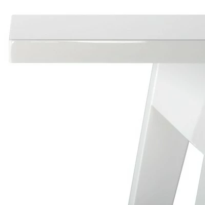 A modern interpretation of the centuries old refectory table, this sophisticated white lacquer console table alludes to the new rustic chic style. With its sleek lines and splayed legs, this console works equally well in the living room or entry hall. Care Instructions: Dust regularly with a soft, dry cloth. Never use oiled or treated cloths on lacquered finishes. Some finishes can be wiped with a damp (not wet) cloth, followed at once by rubbing with a dry cloth to remove fingerprints and smudges. For persistent spots, gently clean with a soft cloth and a solution of water and mild soap, make sure to wipe dry. Use adhesive felt pads, coasters and placemats to protect your furniture.