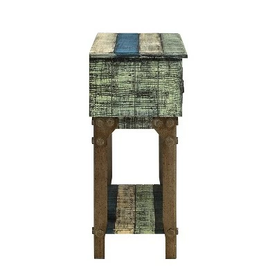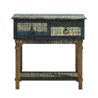 The Marley Collection combines an antique, weathered look with a warm, rustic, industrial feel. Its distressed look is trendy, popular, and full of unique character. The 2-Drawer Hall Console is a perfect addition to any area of your home. It features 2 deep upper drawers and a shelf below which provides ample storage space for a variety of items. Drawers feature antique bronze finished pulls with colored wood handles. Fully assembled. Easy to maintain, spot or wipe clean when necessary.