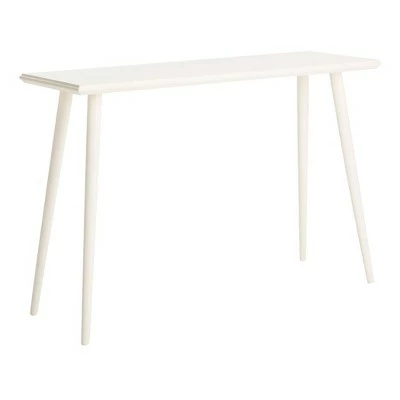 Crafted with a pine wood blend, this modern console table features a smooth top paired with curved and sleek legs that make a sophisticated statement in any contemporary interior. The neutral hue of this table was created by a special water-based paint finish. This paint color makes the item easy to style and match with other transitional or modern decor. The skinny and slim build of this table maximizes space in an area, great for the minimalist.