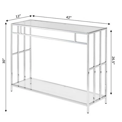 Renovate your home decor with the Mission Glass Console Table with Shelf by Breighton Home. Its classical contemporary style will create an in vogue look anywhere you place it. From halls, living rooms or entryways, the versatility of this accent table will help it become a staple in your home instantly. Offers lots of display and storage room with its two ample shelves, enough space for all your out the door essentials or most beloved mementos. This multifunctional piece is designed with unique side frames that adds to its sleek and clean lined silhouette. Has a metal frame and reliable clear tempered glass tiers, making it easy maintenance and long lasting. Bring it home today and enjoy right after delivery with it simple 4 step assembly. Available in different materials and finishes. Complete the look with additional furniture items from the Mission Collection by Breighton Home. Each sold separately.