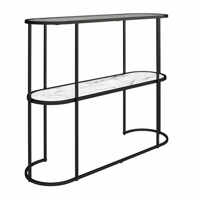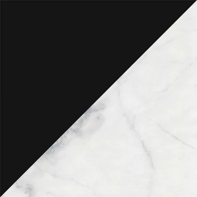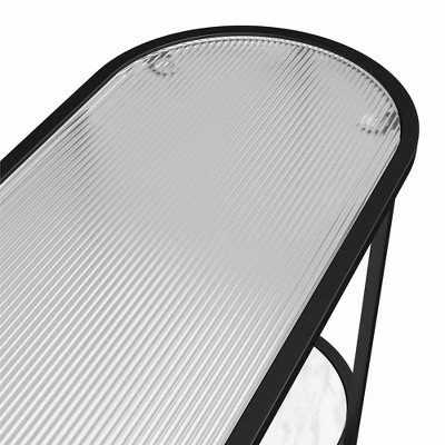 - Featuring a delicate black frame encircling an elegant fluted glass top revealing a contemporary soft faux marble top below