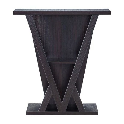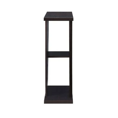 Minimalist and uniquely shaped, this spacious console table will add visual interest to your entryway. Two unique rectangles encase the v-shaped inspired design and one shelf, giving this piece a modern feel. Display your favorite vases or books on the bottom and middle shelves and line the top with fresh flowers on this beautiful table