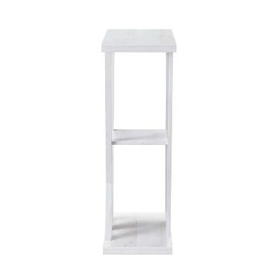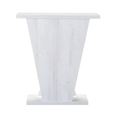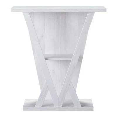 Minimalist and uniquely shaped, this spacious console table will add visual interest to your entryway. Two unique rectangles encase the v-shaped inspired design and one shelf, giving this piece a modern feel. Display your favorite vases or books on the bottom and middle shelves and line the top with fresh flowers on this beautiful table